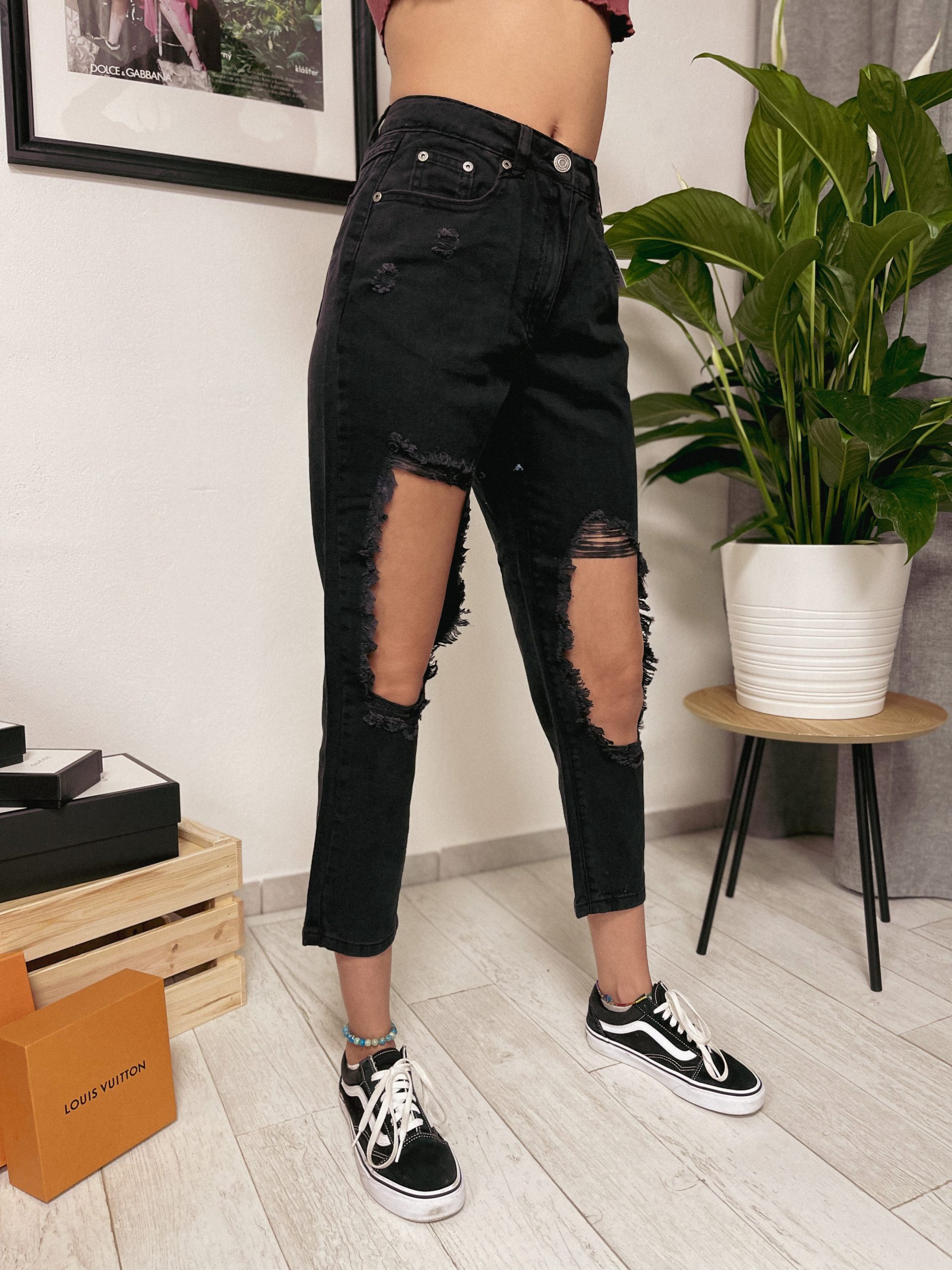 Rifľové nohavice rovného strihu.